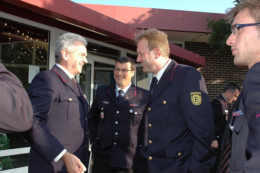 Häfele begrüßte am Samstag vormittag verschiedene Honoratioren aus der Politik und den Reihen der Feuerwehr, darunter Landrat Dr. Achim Brötel, der Bürgermeister der Gemeinde Mudau Dr. Norbert Rippberger, Landesbranddirektor Hermann Schröder, Kreisbrandmeister Rainer Dietz und sein Stellvertreter Klaus Theobald, den Präsidenten Dr. Frank Knödler und den Geschäftsführer des Landesfeuerwehrverbandes Willi Dongus und Bundesjugendleiter Hans-Peter Schäfer.