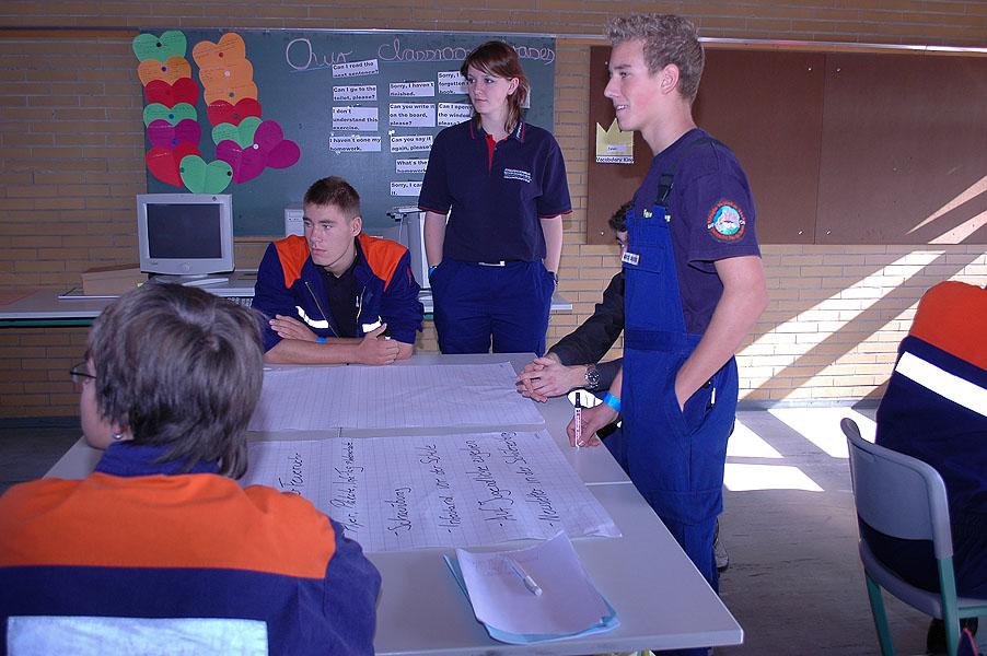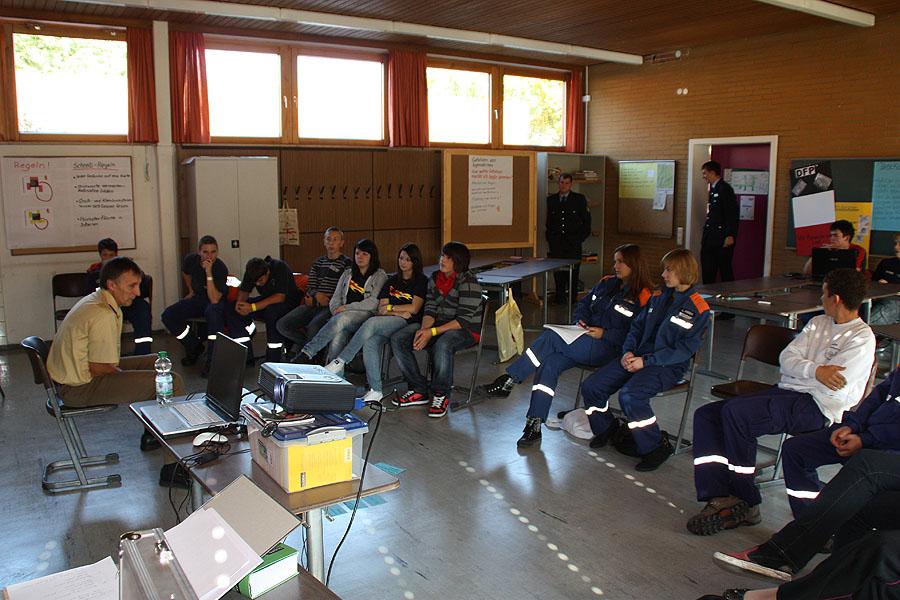 Gemeinsam mit Sven Gramstadt, Bildungsreferent der Deutschen Jugendfeuerwehr, klärten die Jugendlichen am Vormittag in einem Workshop, was es mit "Integration" auf sich hat und wie man diese erreicht. Die Jugendlichen erörterten Möglichkeiten zur Integration, die einfacher sind als man es sich manchmal vorstellt. "Mutig sein" hilft auch bei der Integration von gehandicapten Jugendlichen und Jugendlichen mit Migrationshintergrund.