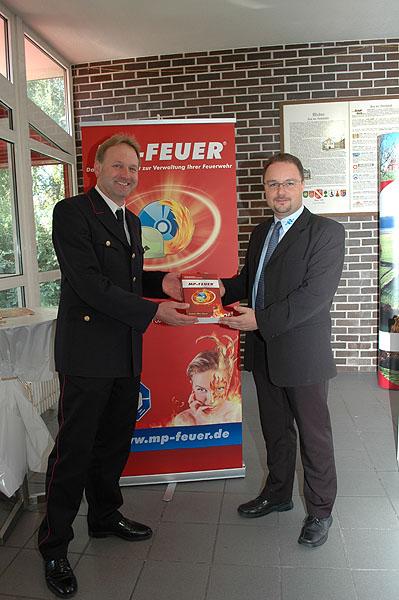 Die Softwarefirma MP-SOFT-4-U GmbH stellte anschließend ihre Verwaltungssoftware für Jugendfeuerwehren vor und der Geschäftsführer, Peter Breuer, überreichte Thomas Häfele symbolisch eine Software-Verpackung von "MP-Feuer". Noch in diesem Jahr erhalten alle Jugendfeuerwehren in Baden-Württemberg kostenfrei eine Version von "MP-Feuer" zur freien Verwendung, um die Daten ihrer Jugendlichen, Ausrüstung, Termine und noch vieles mehr verwalten zu können.