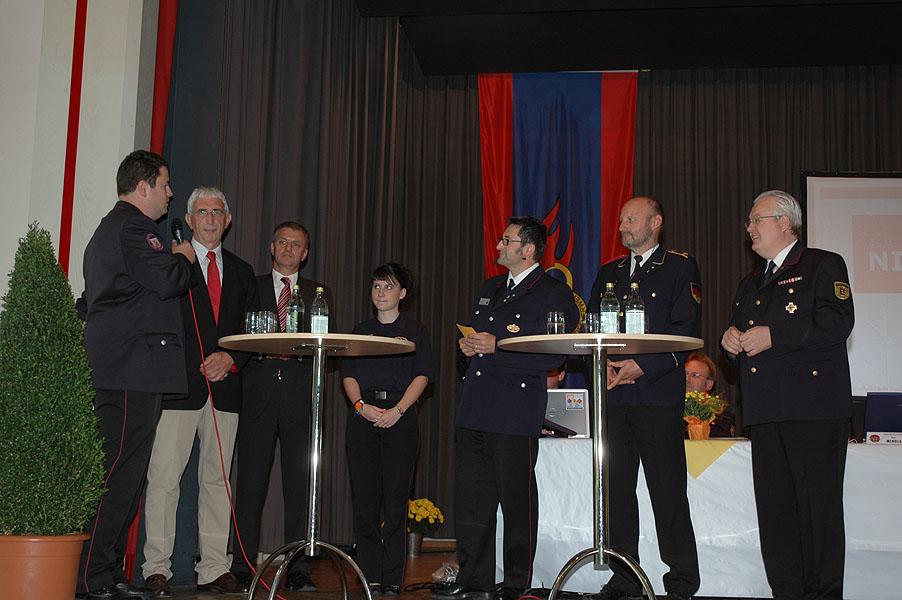 Anstelle der obligatorischen Grußworte plauderten und diskutierten in einer lockeren Gesprächsrunde mit dem Titel "Zu Gast bei Nico Mast" die Teilnehmer MDL Georg Nelius, Bürgermeister Dr. Norbert Rippberger, der Vorsitzende des Landesfeuerwehrverbandes Dr. Frank Knödler, der Bundesjugendleiter Hans-Peter Schäfer, die Landesjugendsprecherin Patricia Otto und der Jugendwart Jürgen Miko aus dem Neckar-Odenwald-Kreis über aktuelle Themen in der Jugendfeuerwehrarbeit, wie zum Beispiel Nachwuchsförderung durch so genannte Kinderfeuerwehren, Auswirkungen der Ganztagsschulen auf die Jugendarbeit, Anreize durch die Jugendfeuerwehr für die Jugendlichen, warum kommen Jugendliche zur Jugendfeuerwehr und die Integration von Jugendlichen mit Migrationshintergrund. Zum Abschluss dieser Diskussionsrunde stellte die Landesjugendsprecherin sachlich fest, dass "jemand der nicht in der Jugendfeuerwehr war, etwas verpasst hat". Im Anschluss bedankte sich Dr. Frank Knödler bei Landesjugendleiter Thomas Häfele und seinem Team für die geleistete Arbeit und wünschte ein gutes Gelingen für die nächsten Jahre.