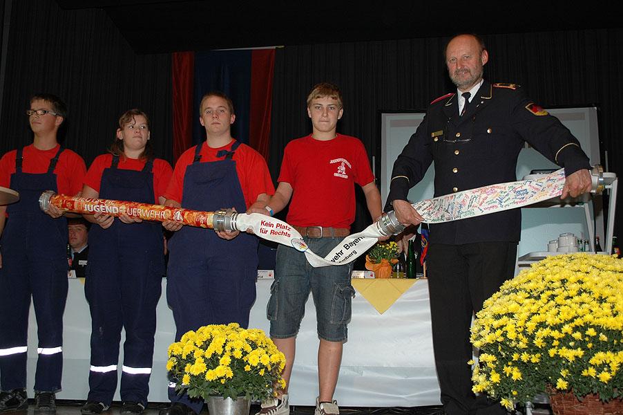 Thomas Häfele bedankte sich bei Birgit Mentla, Brigitte Jahn und Annette Nüsse für ihre Arbeit im Jugendbüro und bei den Fachgebietsleitern und dem Verantwortlichen de Landesfeuerwehrverbandes und natürlich bei seinen beiden Stellvertretern Martin Stürzl und Michael Neubauer für die gute und faire Zusammenarbeit.