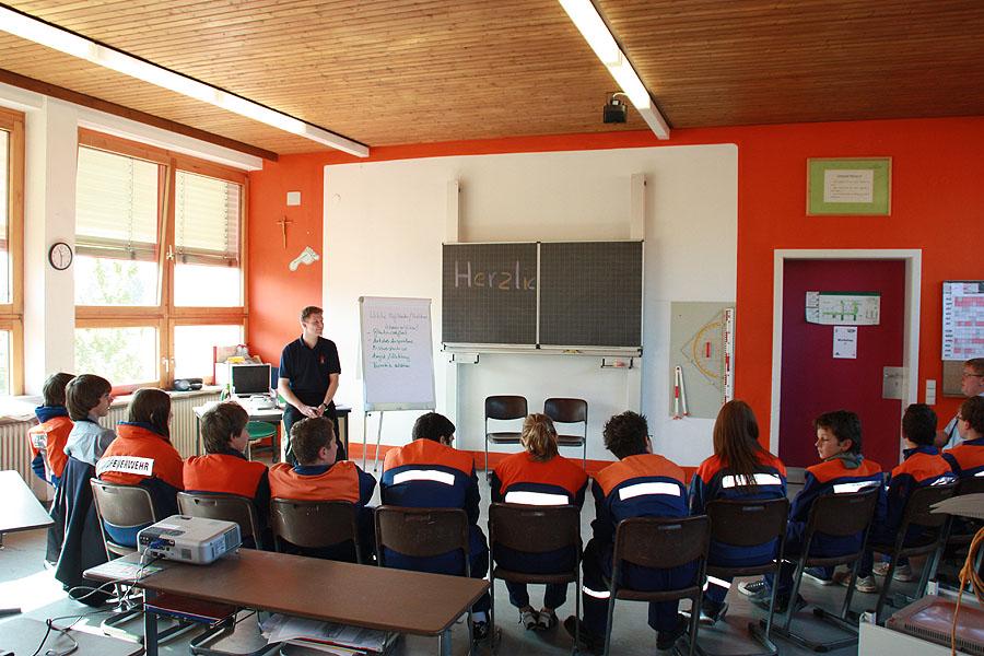 Während die Jugendlichen zu den Workshops in die Mudauer Grund- und Hauptschule aufbrachen, um über verschiedene Themen zu diskutieren, referierte Landesbranddirektor Hermann Schröder, der oberste Feuerwehrmann des Landes, über das Thema "Jugendfeuerwehr fit for Future".