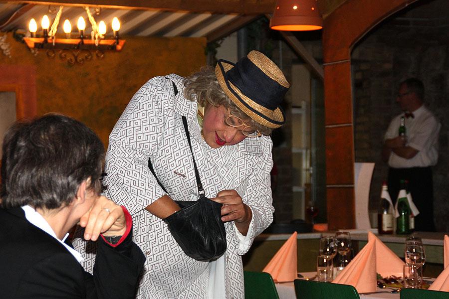 Nach dem Abschlussstück des Spielmannszuges Mosbach lud der Neckar-Odenwald-Kreis, der Kreisfeuerwehrverband und die Jugendfeuerwehr Neckar-Odenwald-Kreis die anwesenden Gäste zu einem gemütlichen Abend in die Sängerlaube des Gesangsvereines "Frohsinn 1842" Mudau ein, wo sie vom Gesangverein herzhaft bewirtet und von Richard Korger alias "Erna" auf den Arm genommen wurden. Der gebürtige Mudauer brachte die Gäste den Abend über mit seiner bzw. ihrer Comedy- und Gesangsdarbietungen immer wieder zum Lachen und bereitete gemeinsam mit dem Gesangverein einen überaus angenehmen Abend.