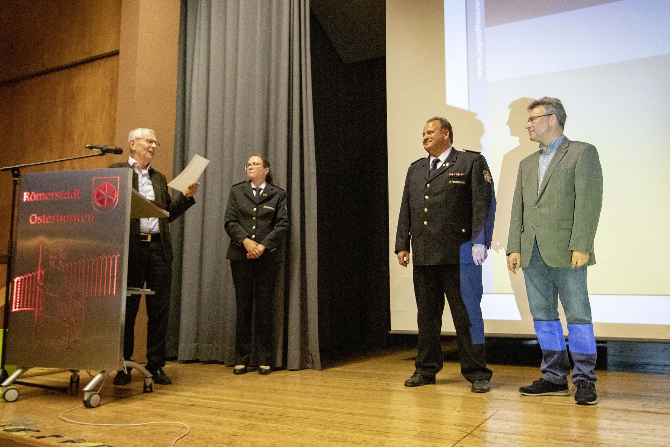 Bürgermeister-Stellvertreter Klaus Vogel begrüßte die Gäste im Namen der "Feuerwehrstadt Osterburken". "Als ehemaliger Landesjugendfeuerwehrwart der Jugendfeuerwehr Baden-Württemberg freut es mich besonders, mal wieder die Jugendfeuerwehren in Osterburken begrüßen zu dürfen", stellte Vogel fest. 1994 war er selbst in der Baulandhalle aus seinem Amt verabschiedet worden. Dennoch sei ihm die Jugendfeuerwehr und die Feuerwehr auch heute noch ein Herzensanliegen.