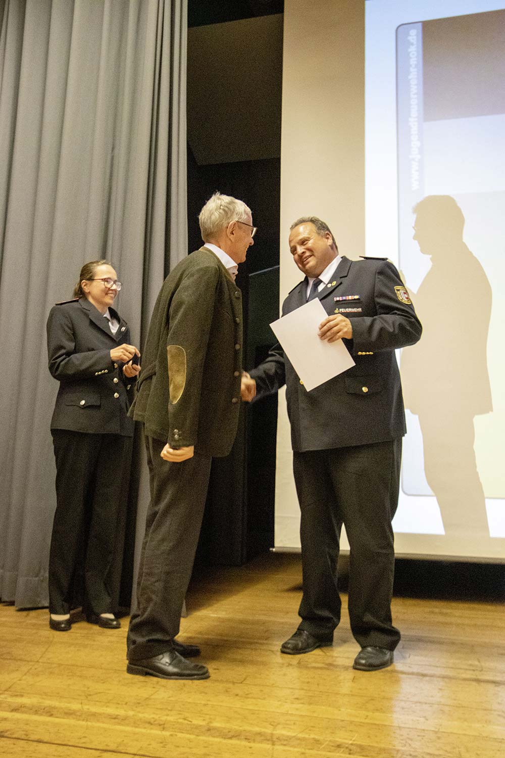 "Für seine kontinuierliche und konstruktive Mitarbeit in allen Belangen der Jugendfeuerwehr Neckar-Odenwald-Kreis seit mehr als 26 Jahren, möchten wir heute einen besonders engagierten Menschen mit der Ehrennadel der Deutschen Jugendfeuerwehr in Silber auszeichnen", mit diesen Worten eröffnete Pamela Hollerbach die Laudatio für den zum Jahresende ausscheidenden Vorsitzenden des Kreisfeuerwehrverbands. Seit 1989 war Andreas Hollerbach Mitglied des Kreisjugendfeuerwehrausschusses und ab 1996 Verbandsvorsitzender. "In all den Jahren war ihm die Jugendfeuerwehr stets eine Herzensangelegenheit." Deshalb konnte der ehem. Landesjugendfeuerwehrwart, Klaus Vogel, dem sichtlich überraschten Andreas Hollerbach die zweithöchste Ehrung der Deutschen Jugendfeuerwehr ans Revers heften.